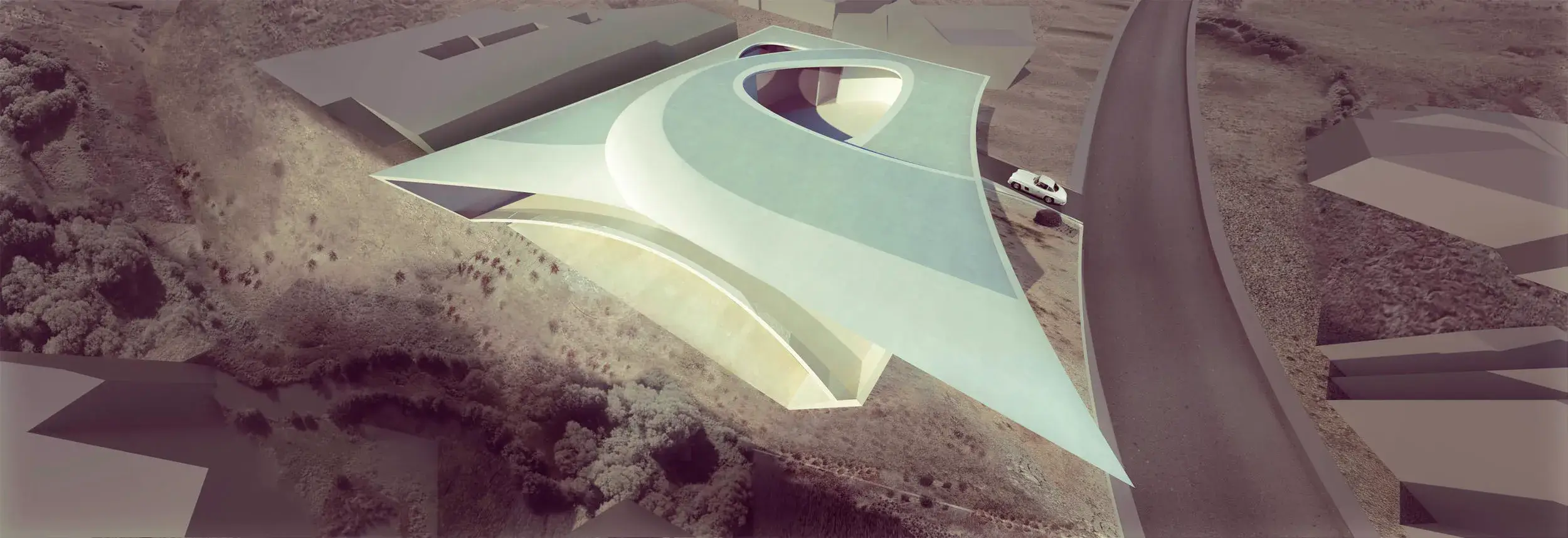 A sculptural concept house in San Diego that contrasts intimacy with openness, extending toward the ocean and enclosed courtyards. I created the renders and developed dynamic camera compositions to best visualize the design’s form and flow for the competition presentation.